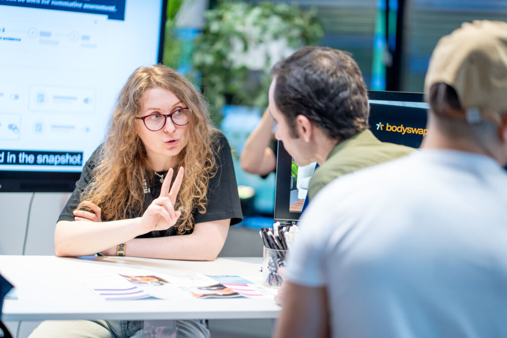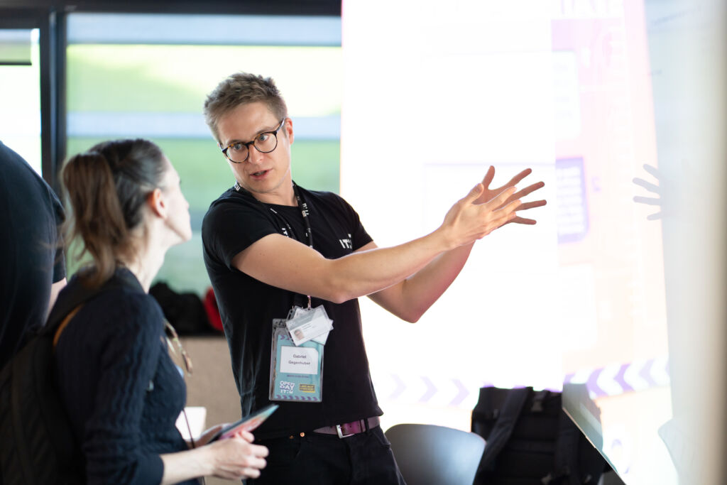 The entire campus, along with the Digital City Studio in Linz’s city center, turned into an interactive experience space. Visitors could actively participate in research: from testing AI-supported learning systems to exploring the role of social media in disaster response and experimenting with technologies for autonomous driving and energy-efficient AI for space applications. Additional projects addressed topics such as AI-assisted support for people with dementia and fairness in AI-driven customer service.
