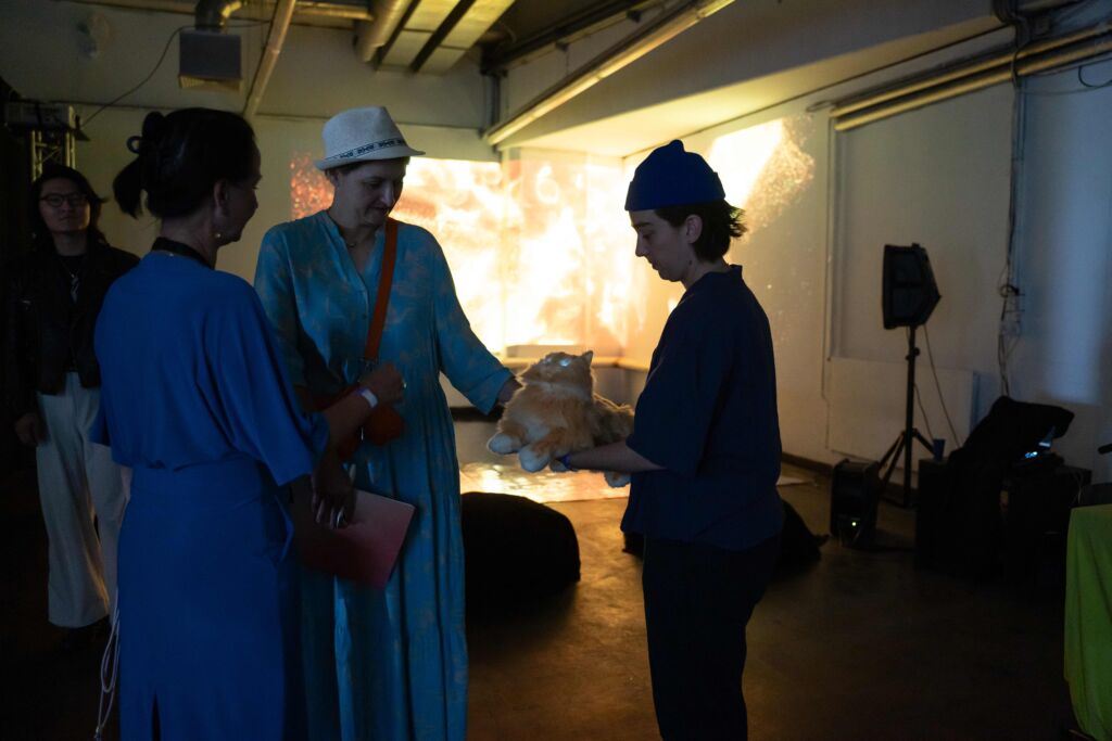 Care is foundational to social solidarity, yet increasingly commodified within capitalist structures, notably through robotics. Reassembling Bolts of Care is a critical, performative exploration of these tensions. By staging interactive robotic performances, the project prompts collective reflection on how care—often exploited as a resource—can ethically intersect with technological innovation. Audiences are prompted to critically reflect on the integration of robotic care technologies into our shared human experiences, confronting the ethical, political, and ontological stakes of posthuman care. This project invites a dialogue about the hidden labor involved in robotic care, questioning the broader implications of outsourcing empathy and emotional labor to technological entities, and highlighting alternative frameworks for care that resist commodification. Video editing and live technical cues were supported by fellow Founding Lab participant Letta Shtohryn.